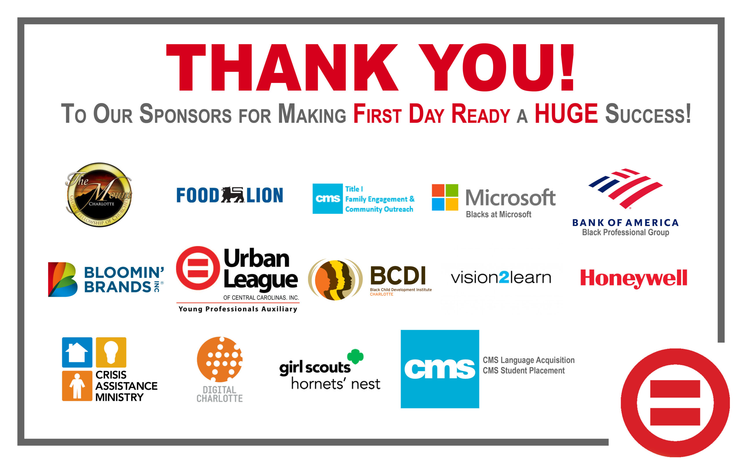 Thank You First Day Ready Sponsors